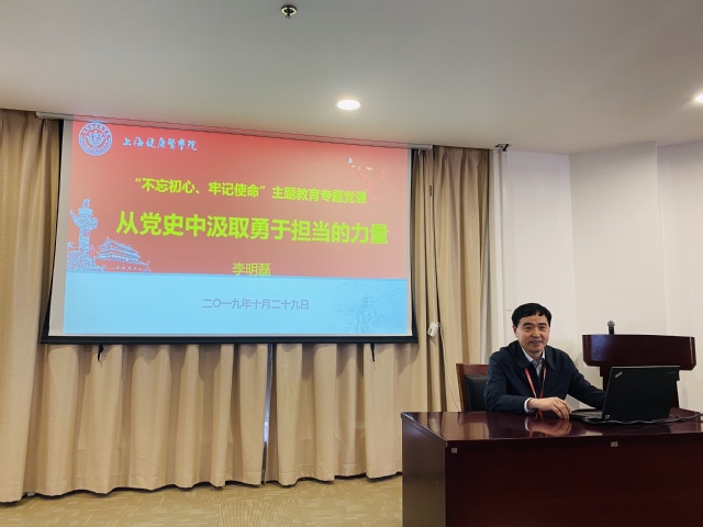 根据“不忘初心、牢记使命”主题教育工作统一部署安排,10月29日,校党委副书记、纪委书记李明磊为党务工会联合党支部全体党员和全体纪检监察干部上了一堂题为《从党史中汲取勇于担当的力量》的专题党课。